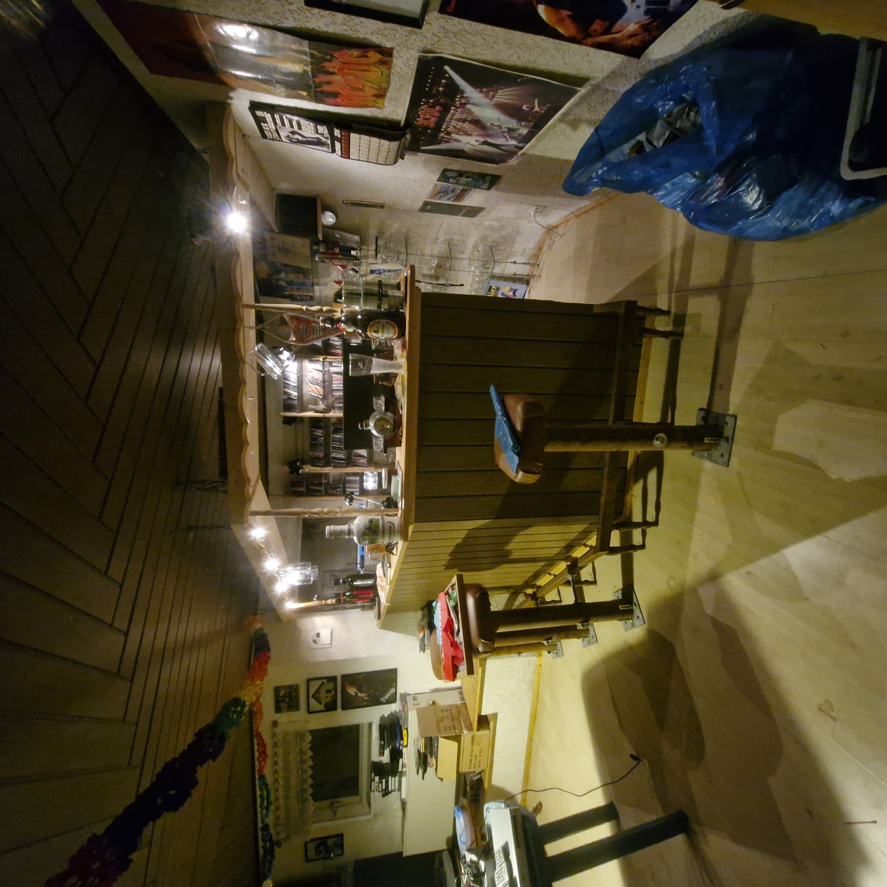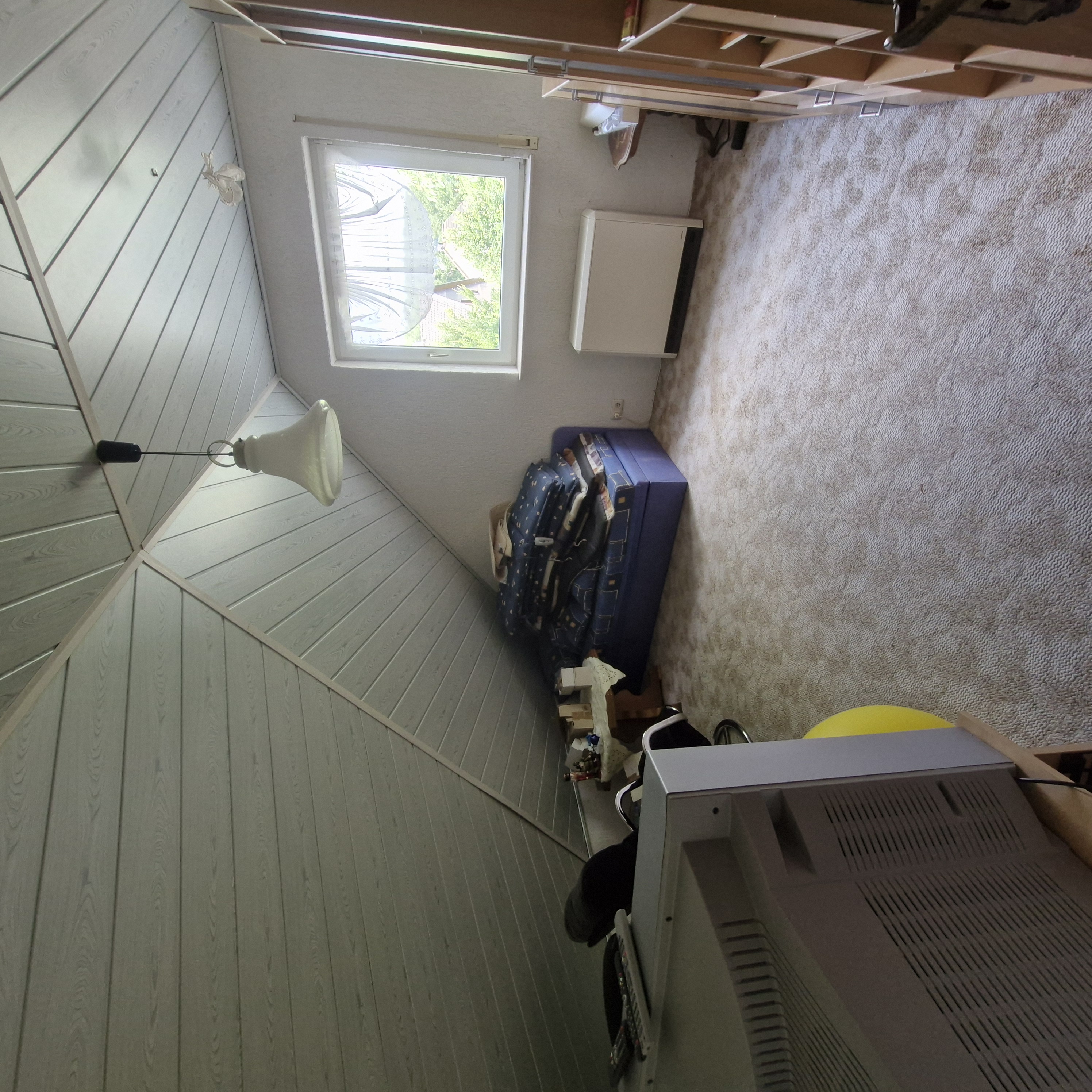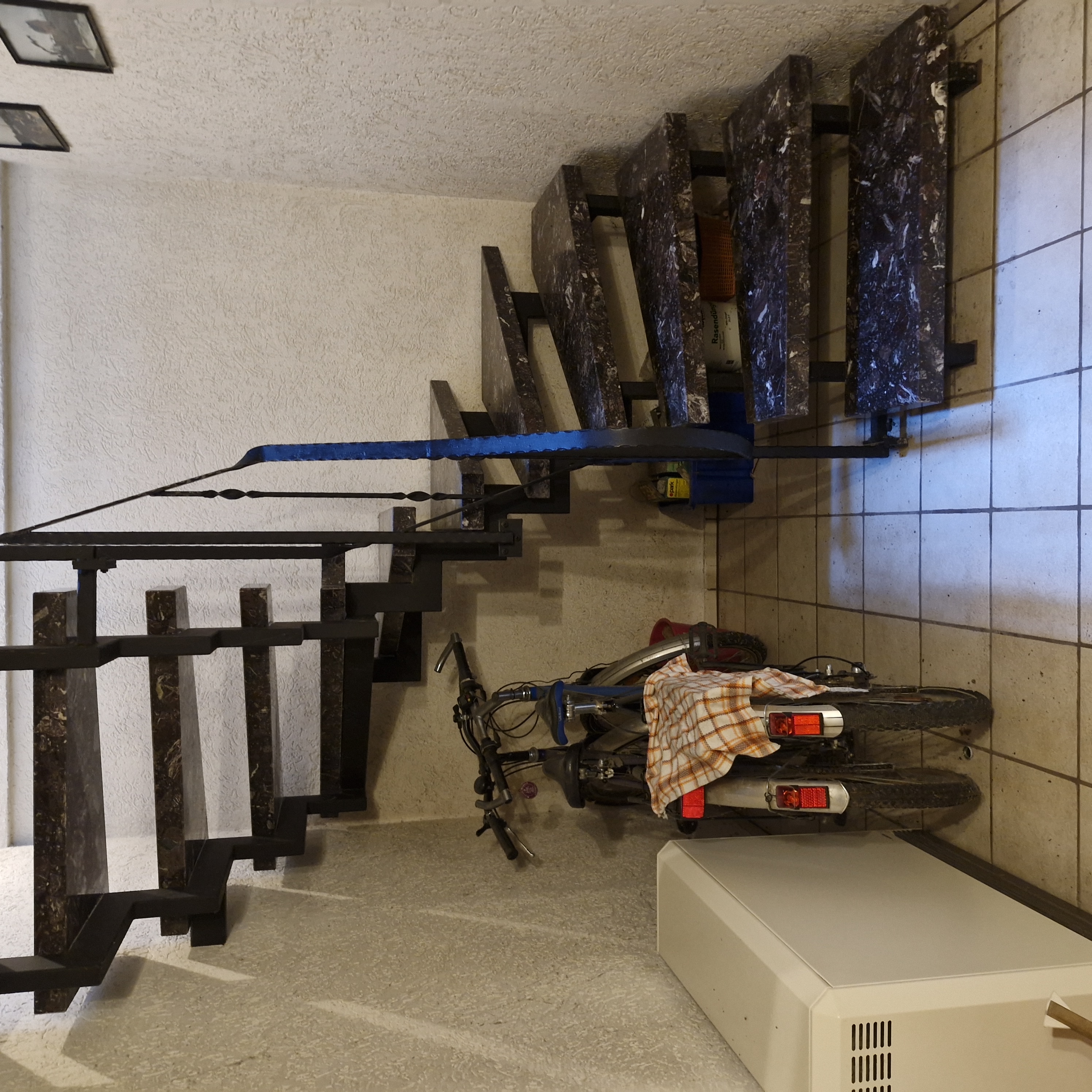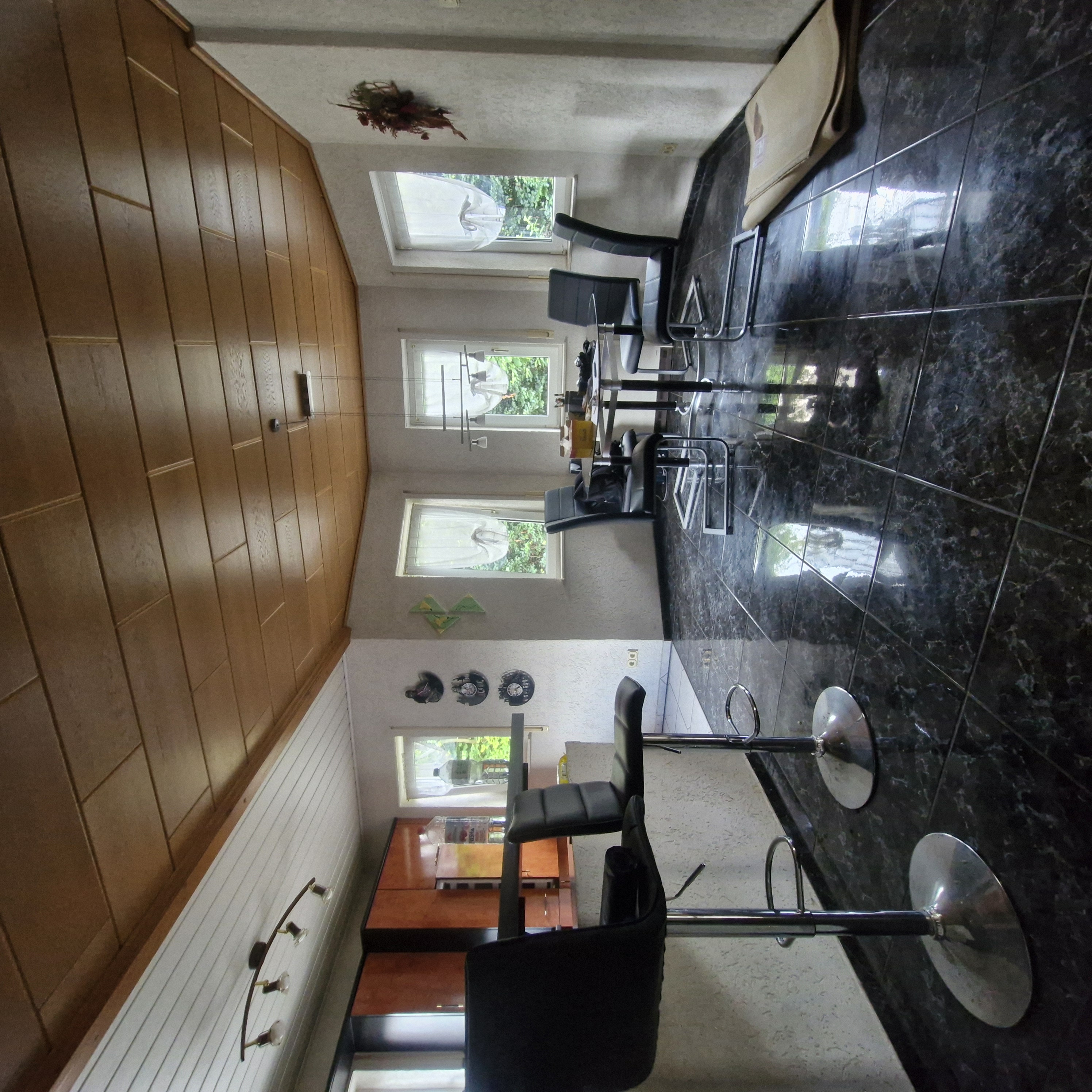 Das Gebäude ist unterkellert. Darin befinden sich diverse Kellerräume und ein liebevoll ausgebauter Partyraum, der mit einem tollen Tresen und Sitzmöglichkeiten ausgestattet wurde. Das Gebäude verfügt über Nachtspeicheröfen, die sehr sparsam sind, die Warmwasseraufbereitung läuft über Elektroboiler und das Haus verfügt über ein ausgebautes Satteldach. Das Gebäude ist sehr energieeffizient und verfügt über einen Wärmebedarfsausweis nach § 12 Wärmeschutzverordnung. Die Dachkonstruktion ist solide und weist keine Schäden oder Abnutzungen auf. Die Außenansicht zeigt ein Gebäude mit einem klaren, funktionalen Design. Die Fassade ist schlicht gehalten und in einem guten Zustand.