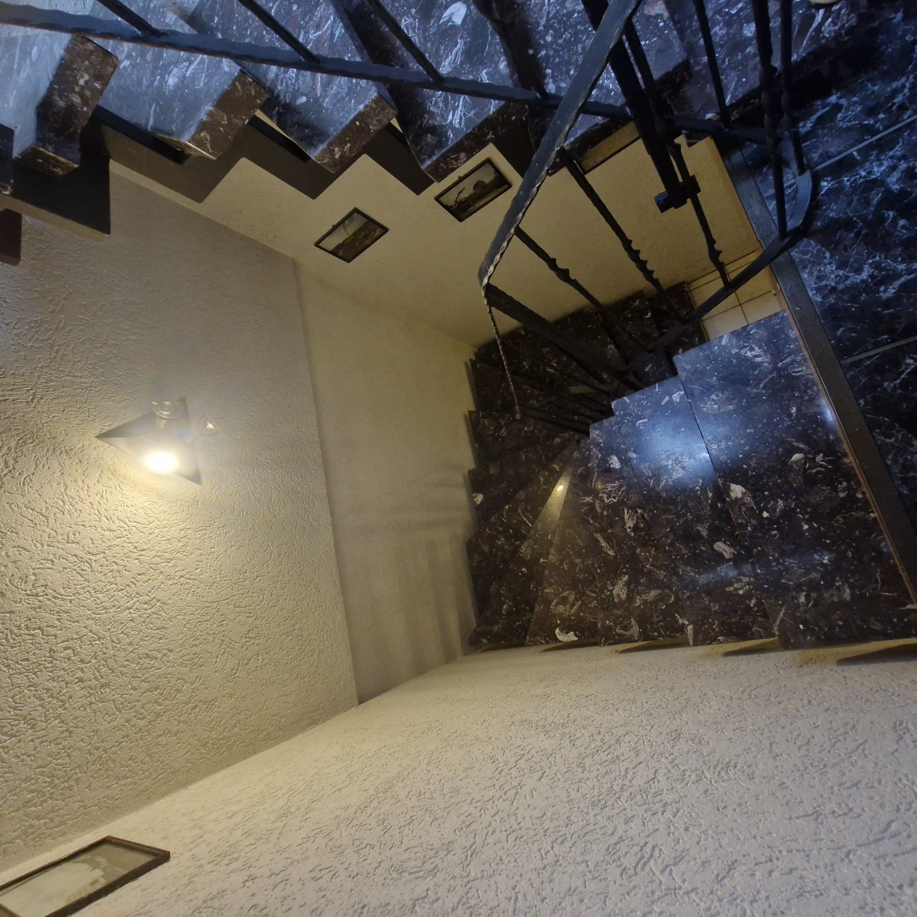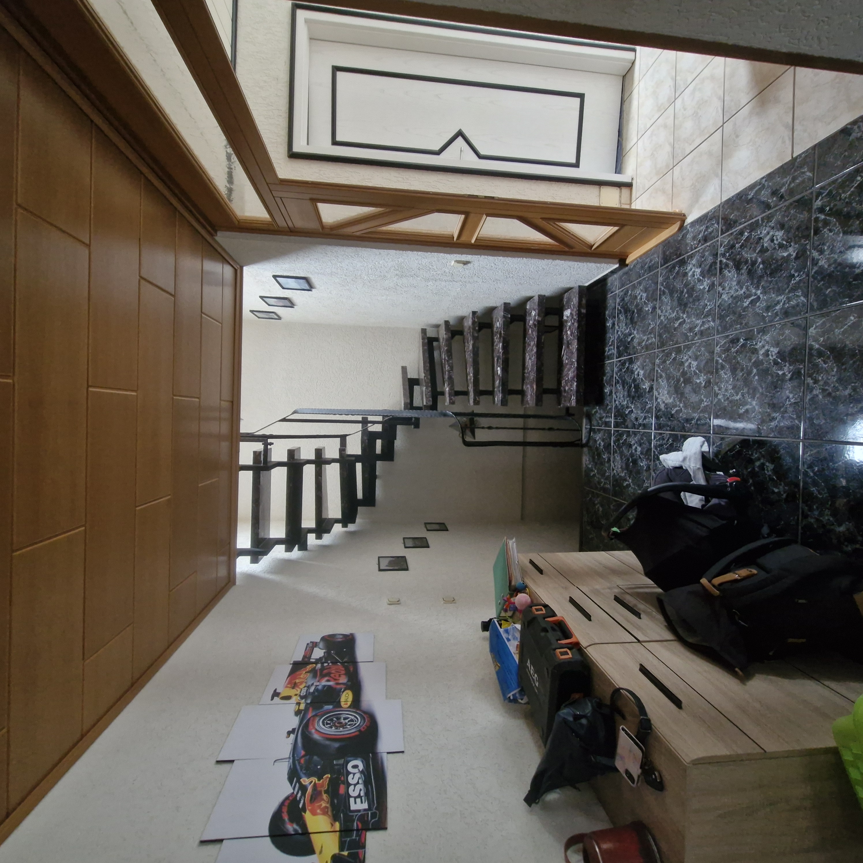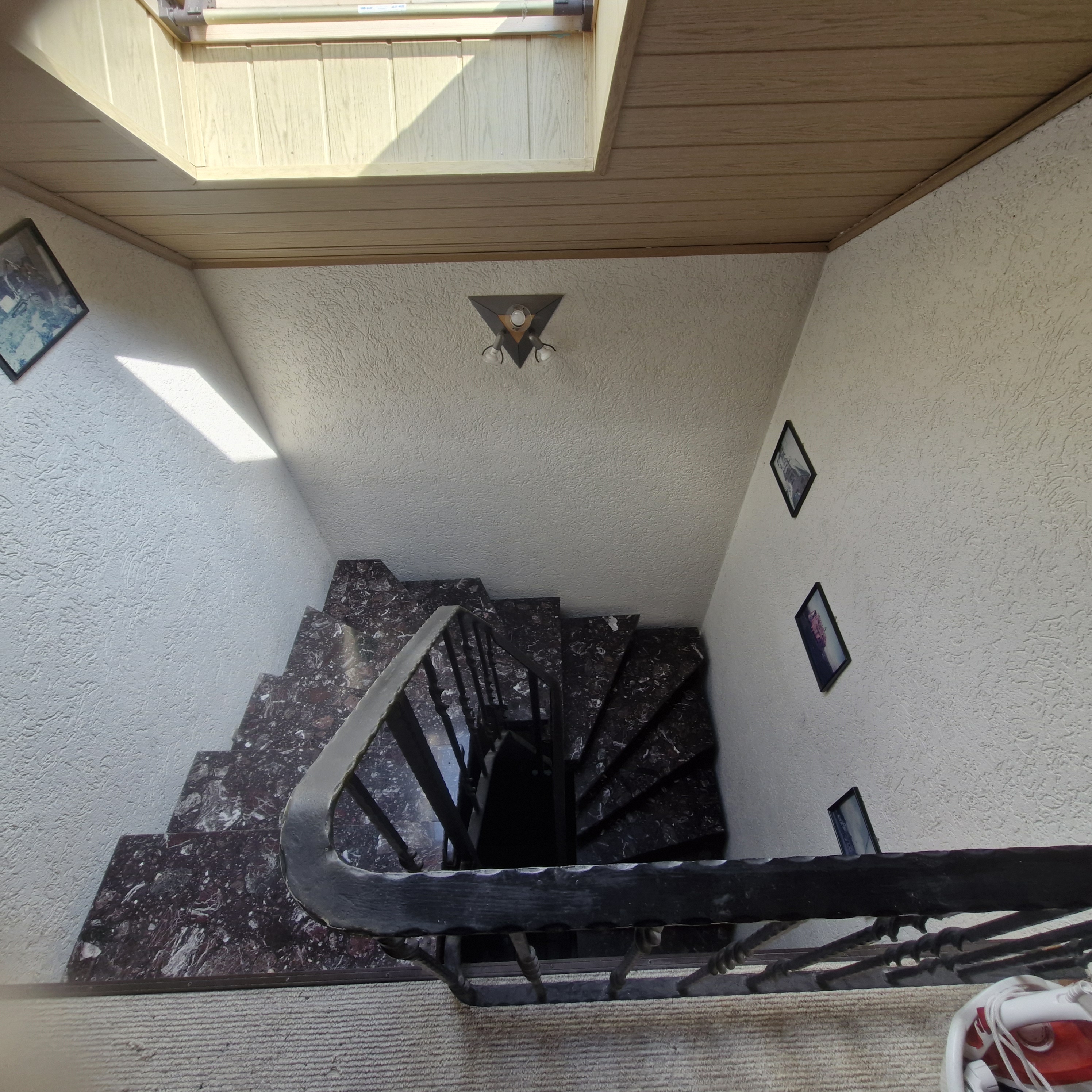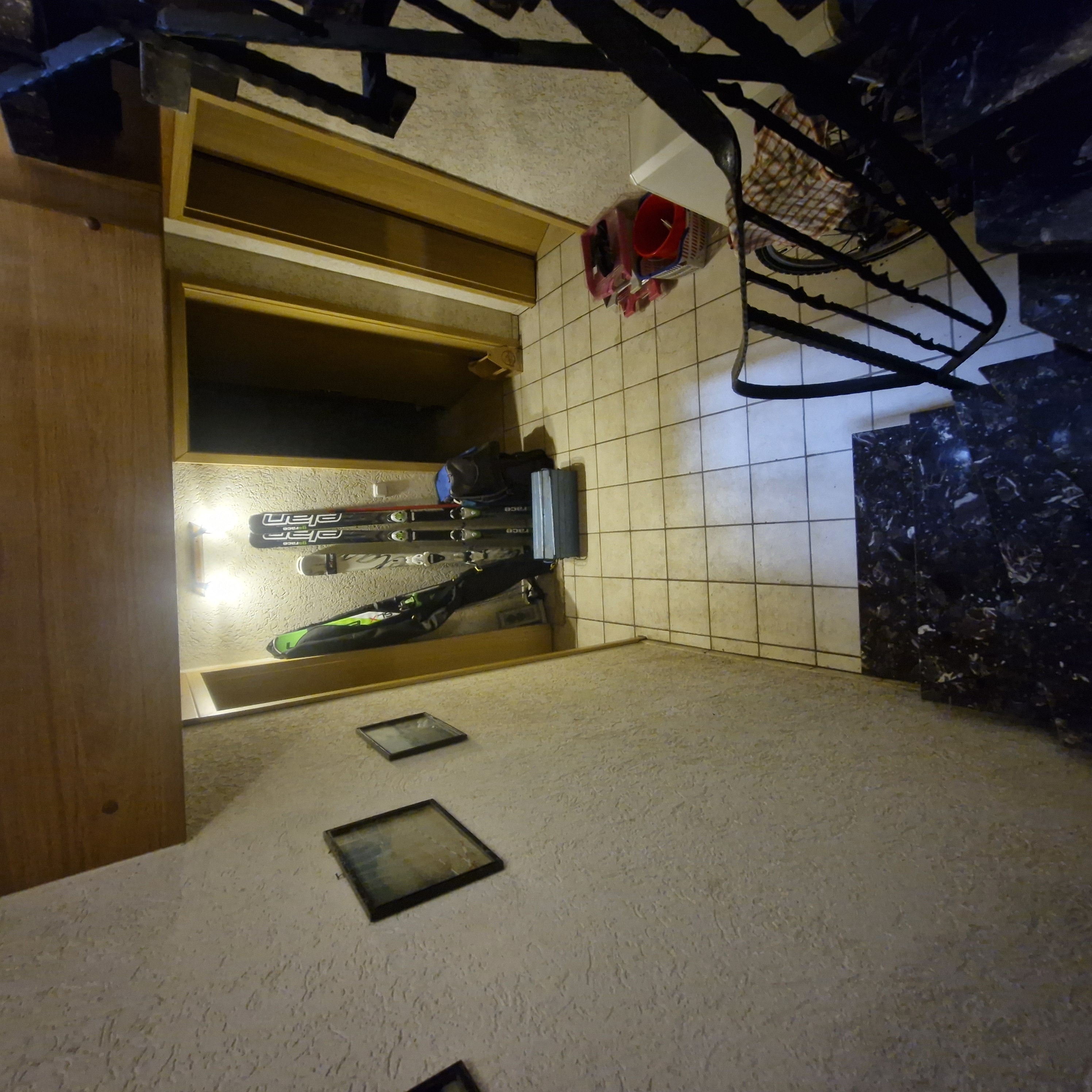 Das Gebäude ist unterkellert. Darin befinden sich diverse Kellerräume und ein liebevoll ausgebauter Partyraum, der mit einem tollen Tresen und Sitzmöglichkeiten ausgestattet wurde. Das Gebäude verfügt über Nachtspeicheröfen, die sehr sparsam sind, die Warmwasseraufbereitung läuft über Elektroboiler und das Haus verfügt über ein ausgebautes Satteldach. Das Gebäude ist sehr energieeffizient und verfügt über einen Wärmebedarfsausweis nach § 12 Wärmeschutzverordnung. Die Dachkonstruktion ist solide und weist keine Schäden oder Abnutzungen auf. Die Außenansicht zeigt ein Gebäude mit einem klaren, funktionalen Design. Die Fassade ist schlicht gehalten und in einem guten Zustand.